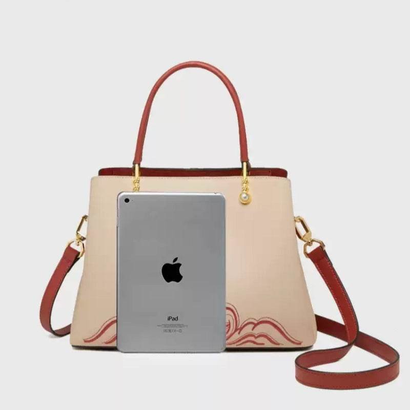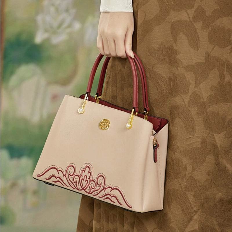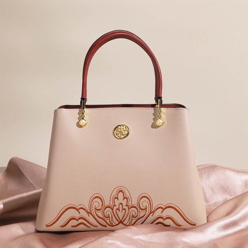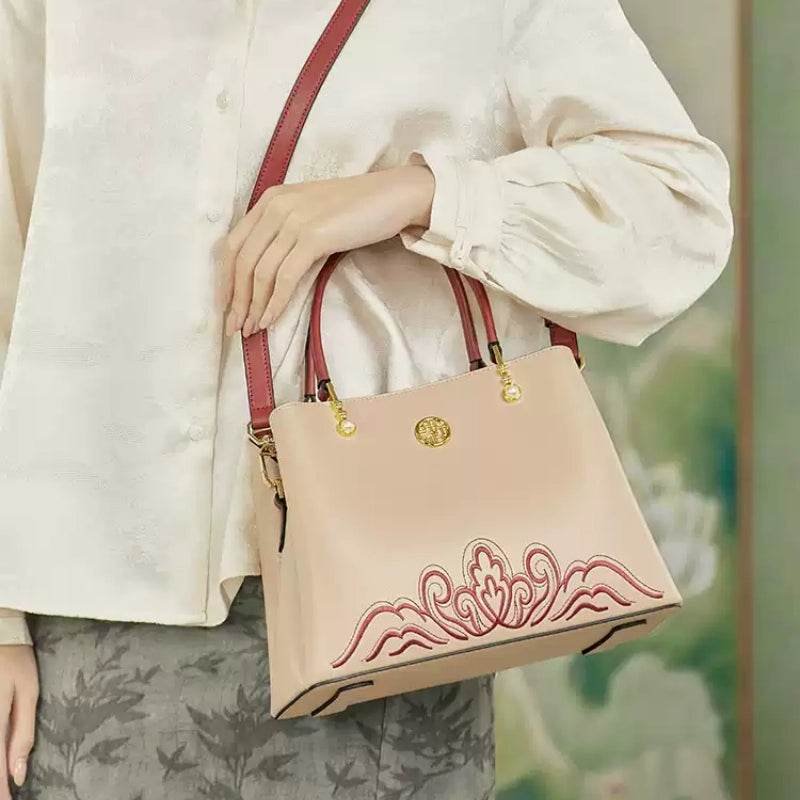 Embroidery Genuine Leather Elegant Crossbody Bag Veined Pattern