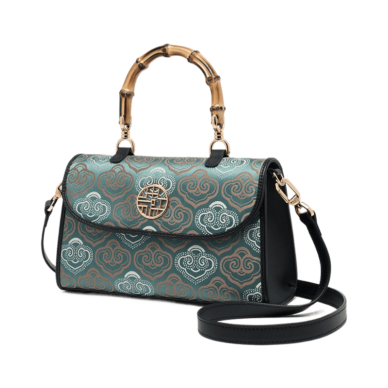 Embroidery Leather Bag Zhuang Brocade Bamboo Handle Handbag