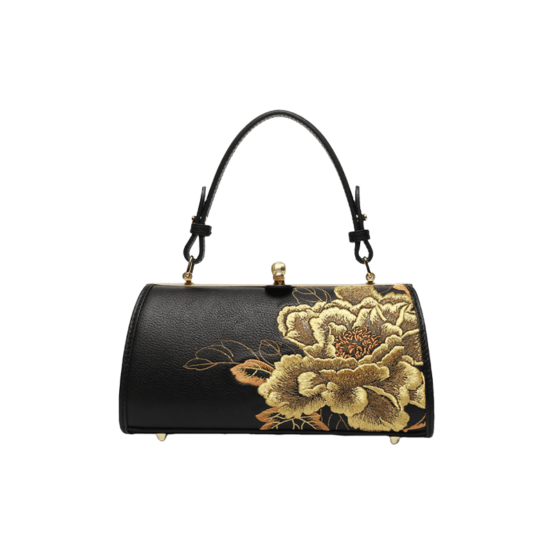 Embroidery Leather Kiss Lock Bag Royal Gold Peony Luxury Handbag