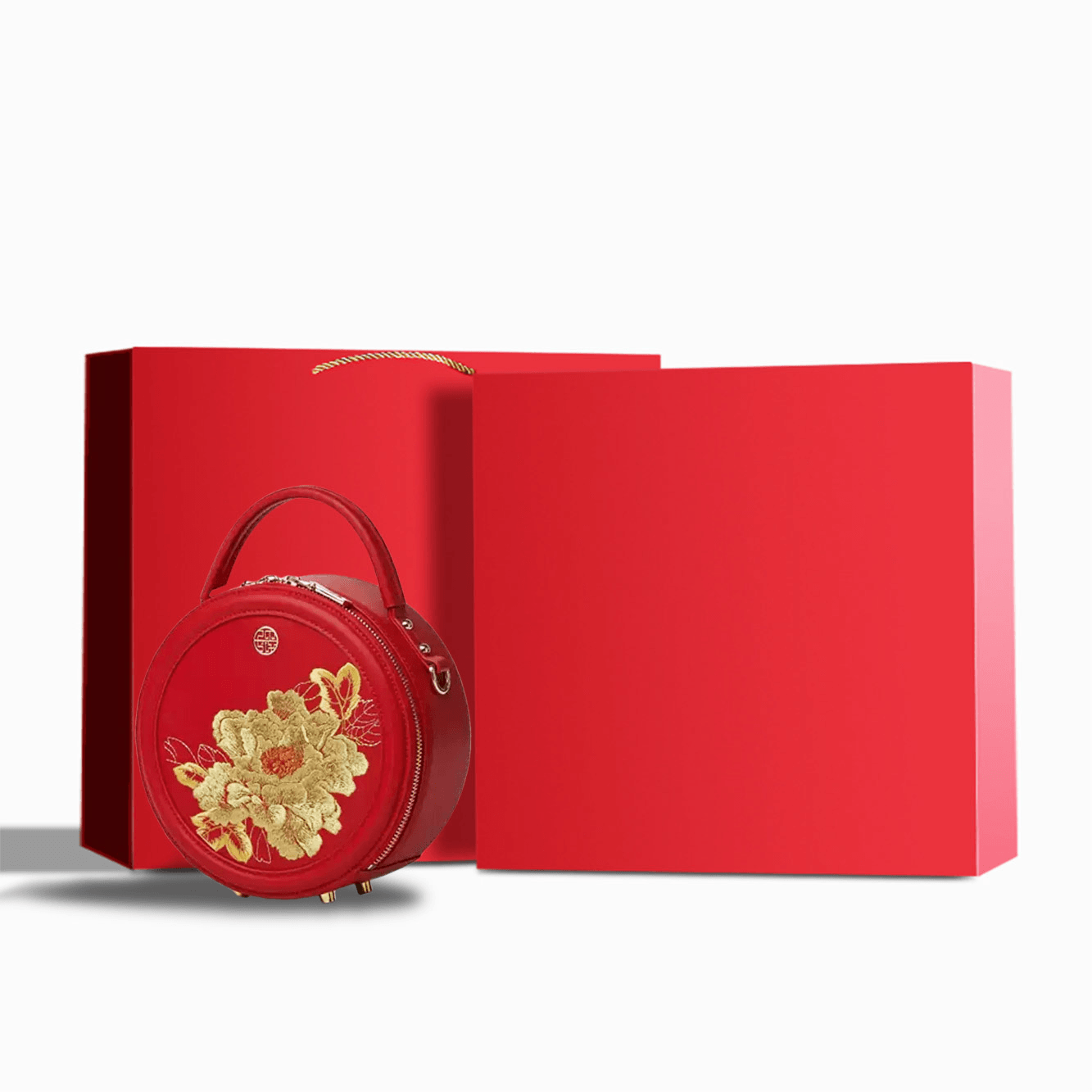 Embroidery Leather Round Handbag High Luxury Royal Gold Peony