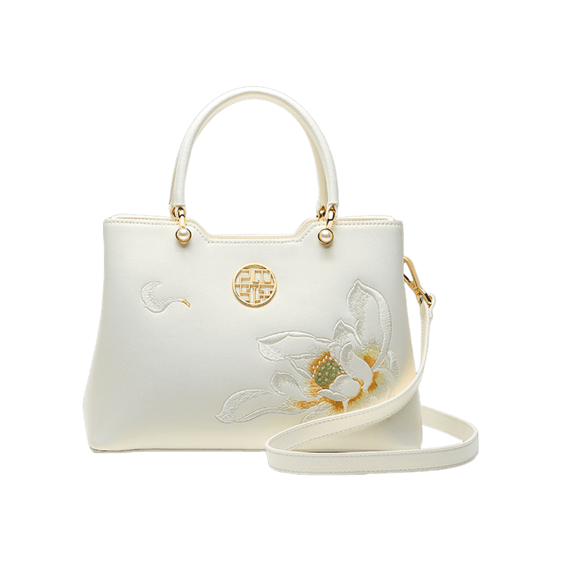 Embroidery Leather White Crossbody Tote Bag Lotus Luxury Gift