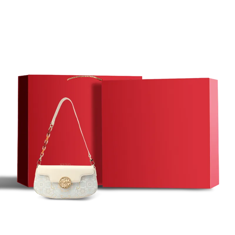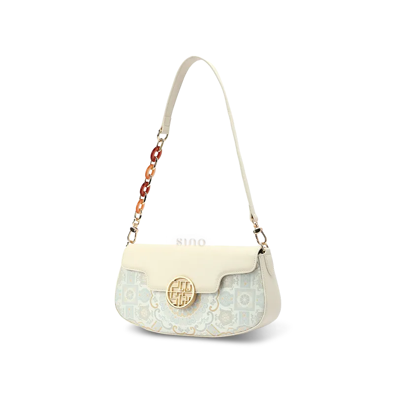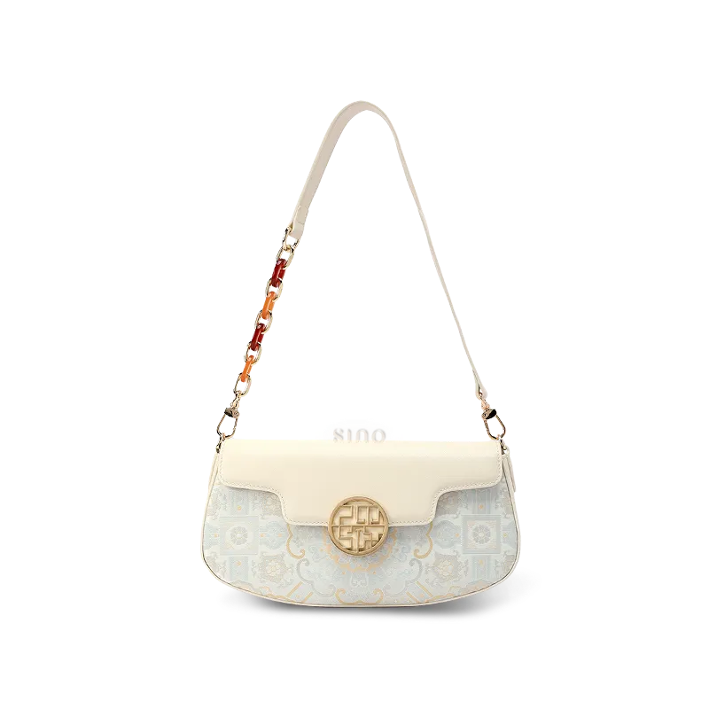Octagonal Gradient Brocade White Luxury Shoulder Bag