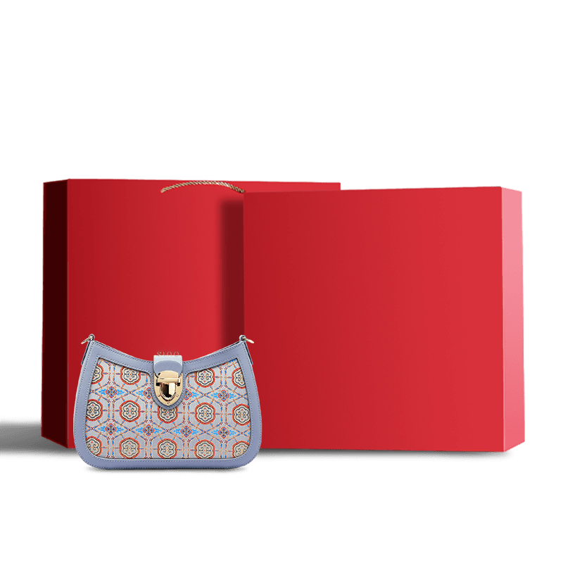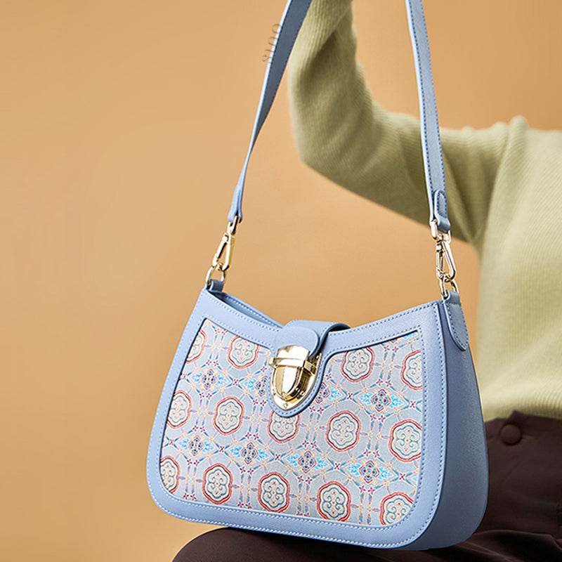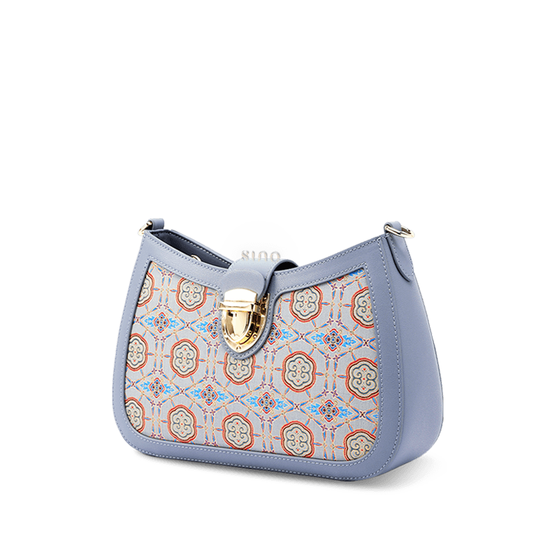 Song Brocade Leather Blue Shoulder Bag Ruyi Pattern