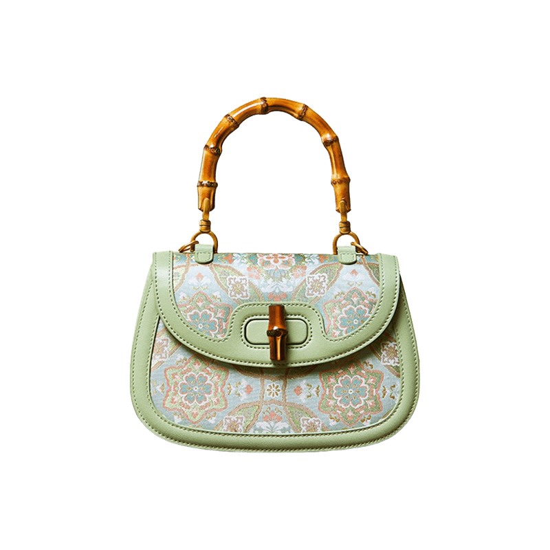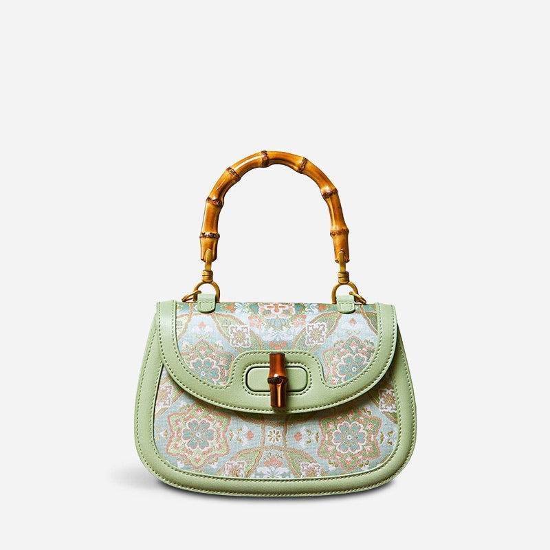 Song Brocade Mulberry Silk Bamboo Handle Handbag