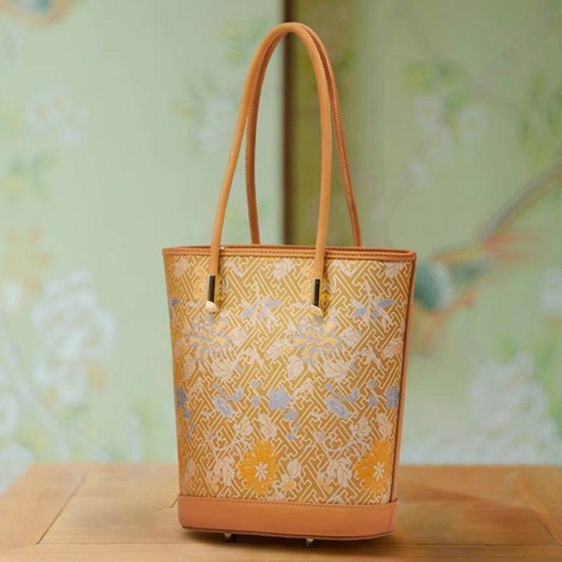 Song Brocade Mulberry Silk Tote Bucket Bag