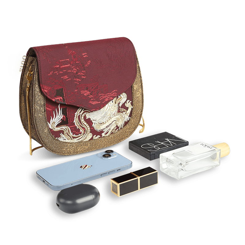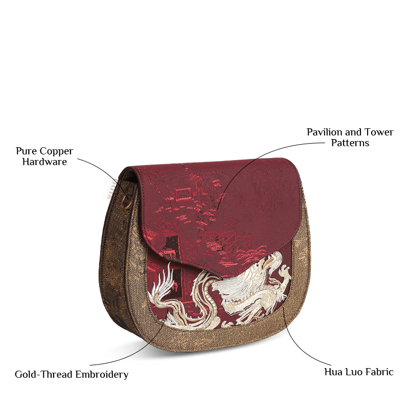 Ultra-Light Saddle Loong Embroidery Bag Recycled Fabric with Hualuo Silk 216g