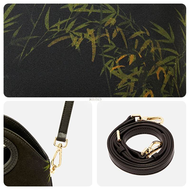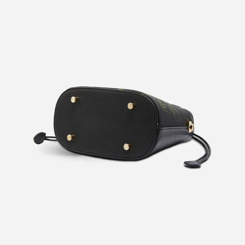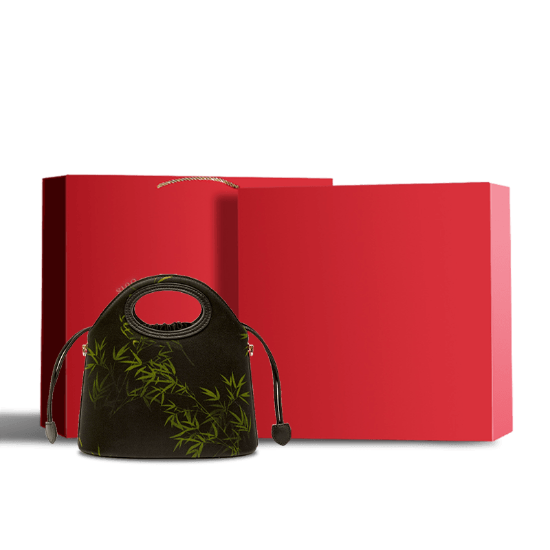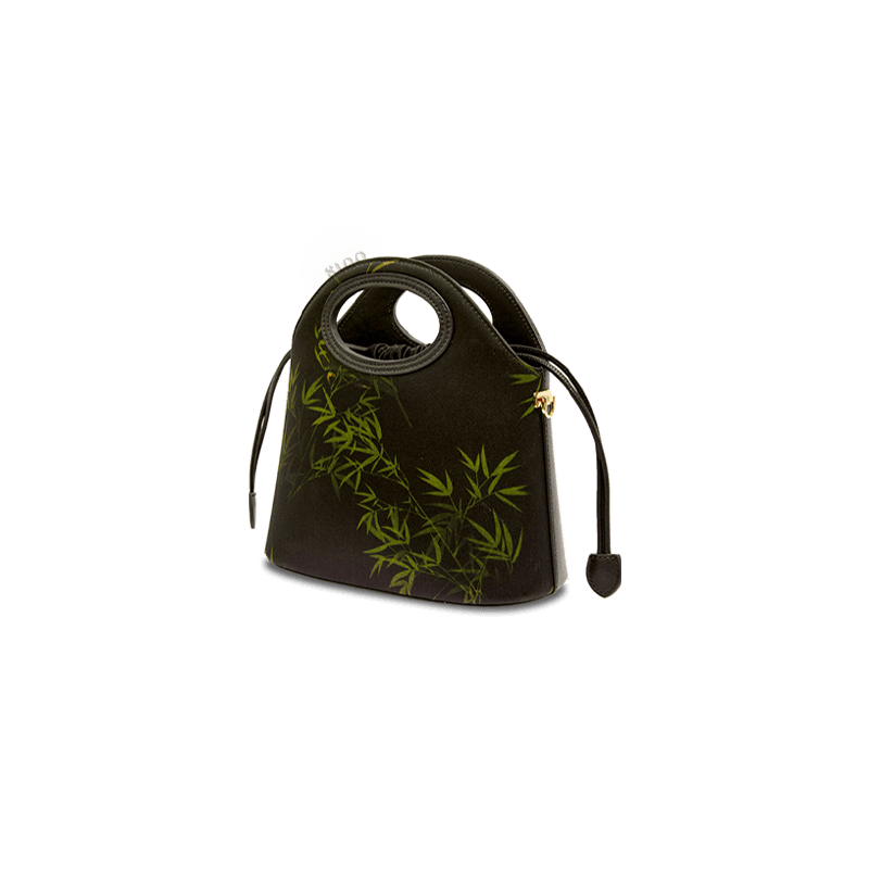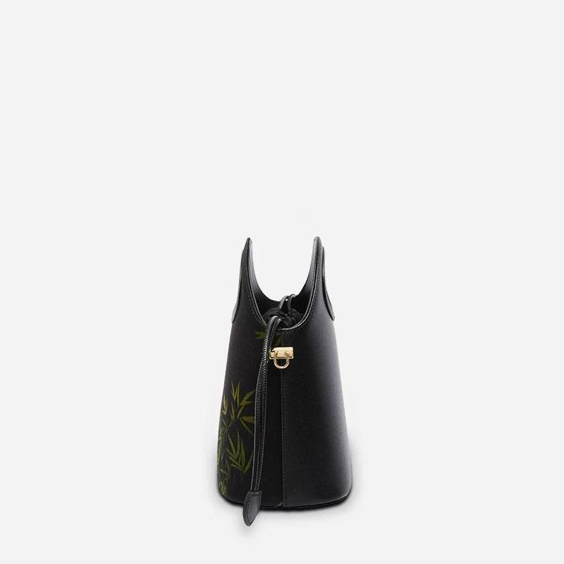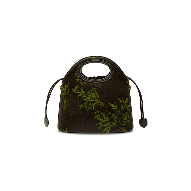 Xiangyunsha Silk Bamboo Black Drawstring Bucket Bag
