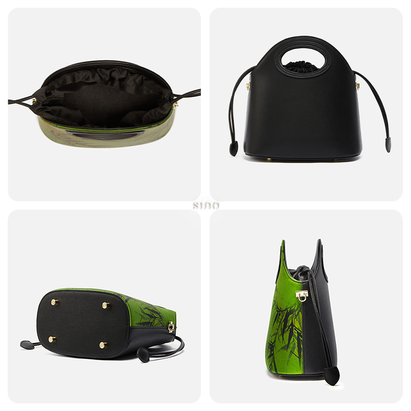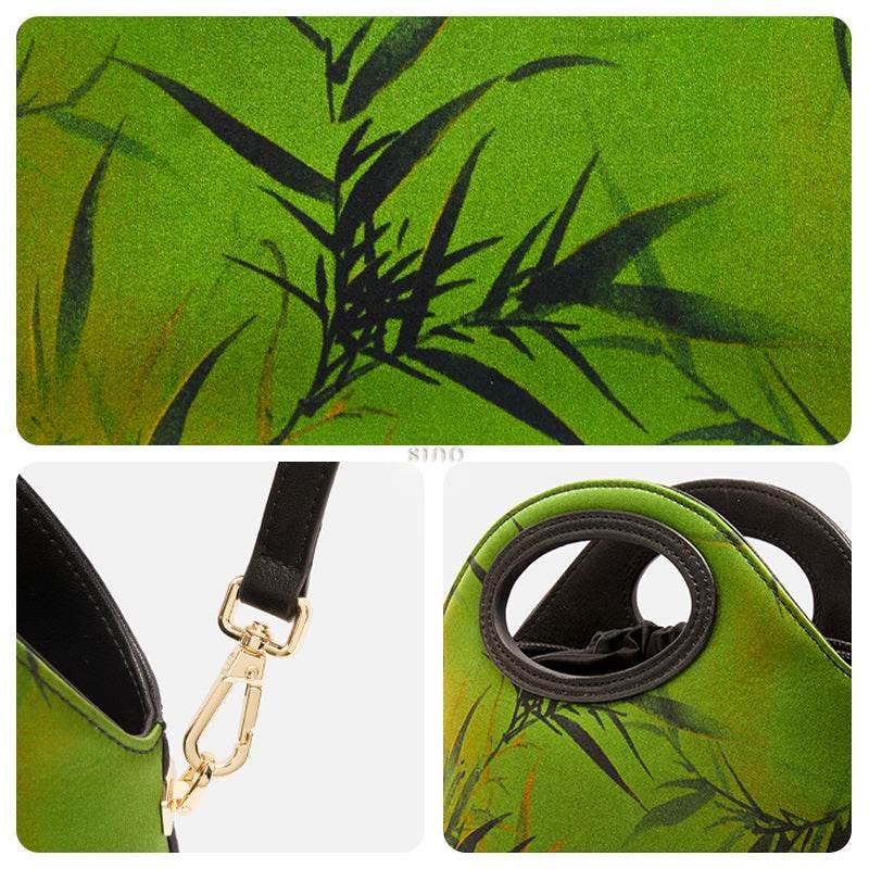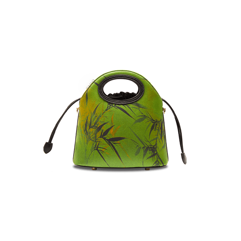 Xiangyunsha Silk Bamboo Green Drawstring Bucket Bag