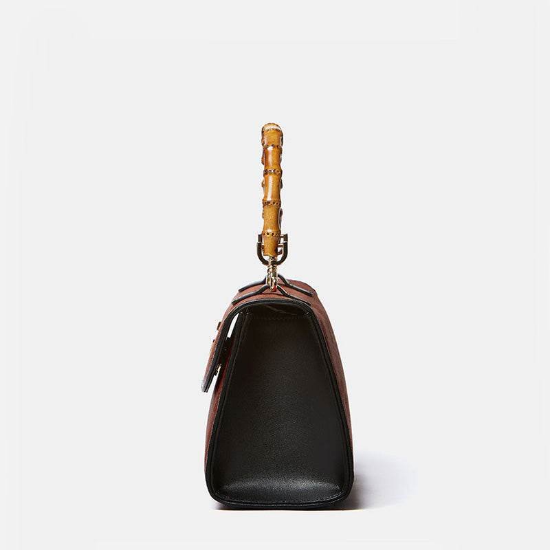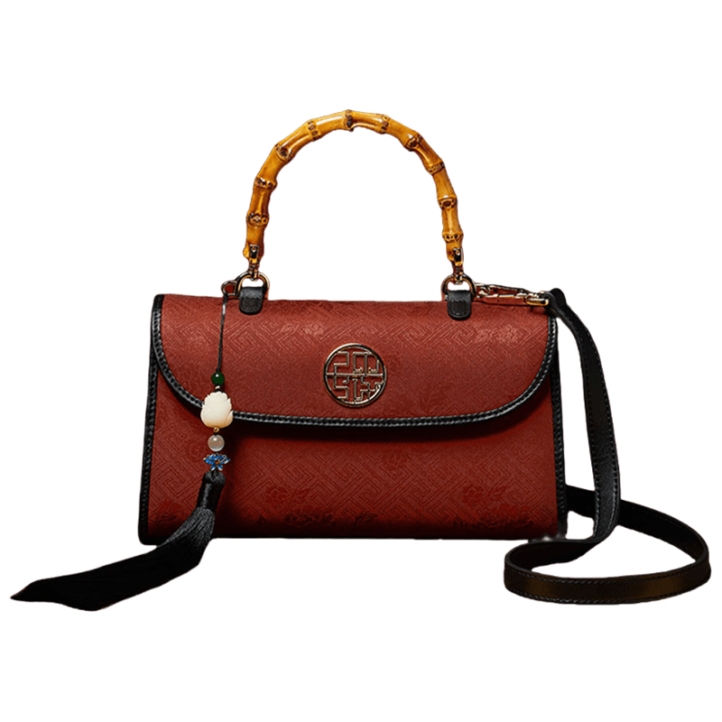 Xiangyunsha Silk Bamboo Handle Brwon Handbag