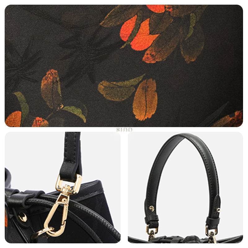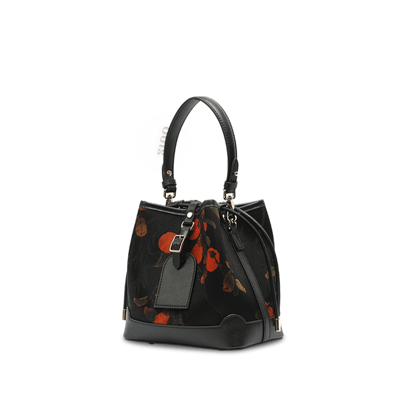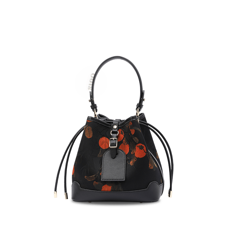 Xiangyunsha Silk Leather Printed Persimmon Bucket Bag