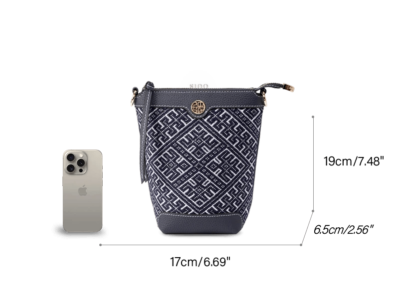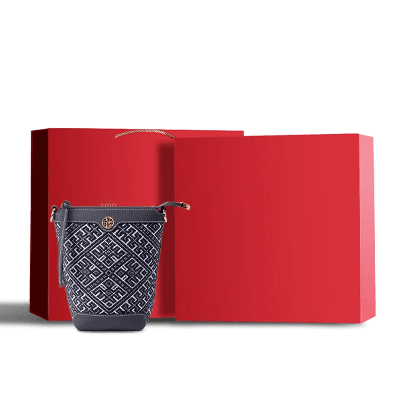 Zhuang Brocade Flying Swallow Motif Embroidered Leather Bucket Crossbody Bag